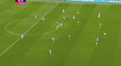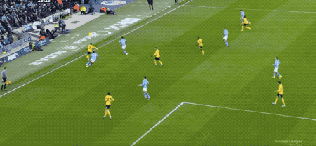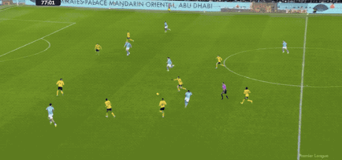 上半场补时阶段,曼城前场连续传递,B席送出助攻,塞梅尼奥完成进球。