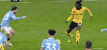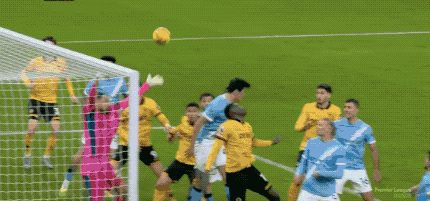 第86分钟,狼队获得角球,莫斯克拉抢在哈兰德之前头球后蹭攻门,皮球砸在横梁上方。